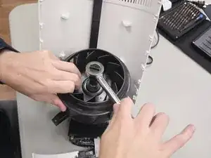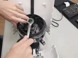 Используя ключ на 1/2 дюйма, открутите болт в центре вентилятора.