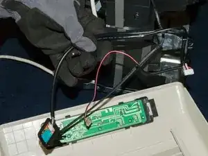 Проводка управляющей платы все еще соединена с задней частью передней решетки.