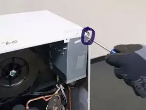 Удалите винты на верхней левой и верхней правой сторонах, которые соединены с блоком управления.