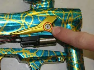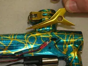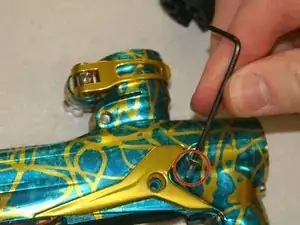 Используйте шестигранный ключ 1/8", чтобы ослабить винт внутри рукояти с правой стороны.