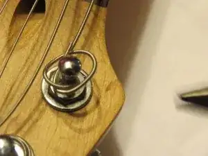 Возможно потребуется использовать плоскогубцы, чтобы снять концы струн с колка.