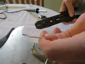 После отделения провода от переключателя удалите оставшиеся оголённые жилы из припоя плоскогубцами с тонкими губками, продолжая нагревать припой.