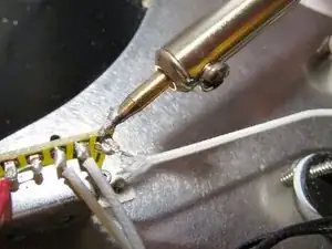 Аккуратно потяните за провод датчика, одновременно расплавляя припой.