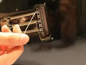 После снятия струн с колков протяните струны через бридж и выведите их из задней части гитары.