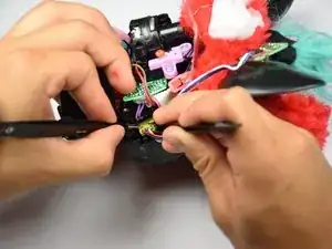 Удалите свободную пластиковую заднюю панель, отдернув её от корпуса Furby.