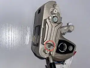 Удалите два винта 5,5 мм, расположенные глубоко с правой стороны корпуса (справа от вас, когда вы смотрите на перед робота), с помощью отвертки JIS #0.
