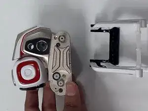 Снимите левую часть белой головы вместе с двумя короткими белыми пружинами, прикреплёнными к ней, потянув их руками и пальцами.