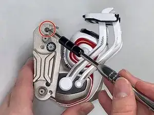Удалите винт 7,5 мм посередине каждого из четырёх красных колёс с помощью отвертки JIS #1.