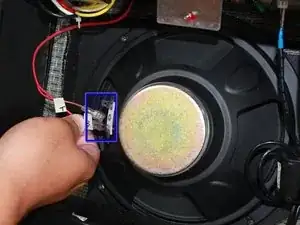 Снимите два штекерных соединителя с клемм динамика.