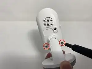 Открутите два винта Phillips #00 длиной 8 мм с задней панели устройства.