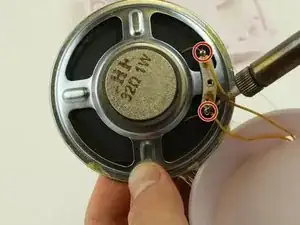 Удалите четыре винта Phillips #2 длиной 6 мм, которые крепят динамик к его пластиковой раме.