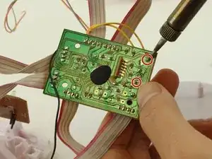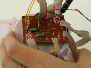 Удалите два винта Phillips #2 длиной 6 мм, которые крепят основную плату к пластиковой раме.