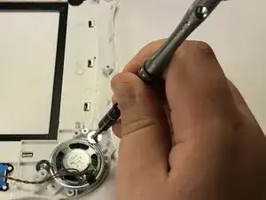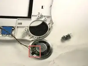 Снимите два винта, фиксирующие динамик.