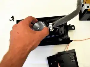 Аккуратно потяните кабель динамика из разъёма кнопочной панели, слегка покачивая его.