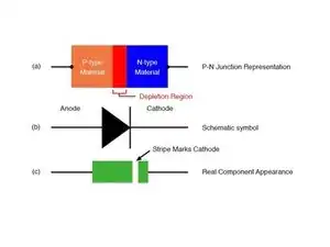 Величины при измерении напряжения в цепи диода: (a) прямое смещение. (b) обратное смещение.
