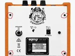 Вставка неправильного 9В разъёма постоянного тока (2.5 мм, центральный положительный) привела к дыму, и устройство перестало работать от сетевого питания. Это руководство покажет, как отремонтировать этот Crush Mini примерно за $0.37 в деталях.