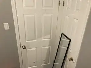 Поднимите разбитое зеркало с двери.