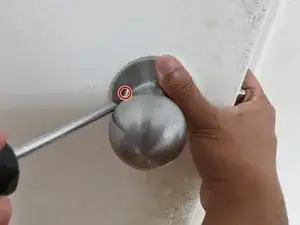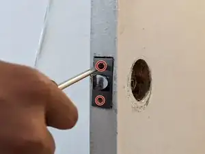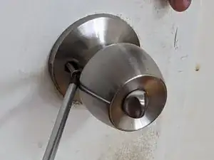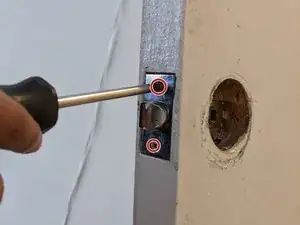 С помощью отвертки Philips #2 удалите два винта с проходной дверной ручки.