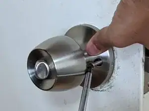 В этом руководстве по замене представлены подробные шаги по установке дверной ручки с функцией приватности. Процедура подготовлена в легко воспринимаемом формате для людей с минимальным или отсутствующим опытом замены домашних деталей. Это демонстрируется с помощью простого языка и фотографий. Руководство показывает процесс снятия проходной дверной ручки и установки ручки с функцией приватности.