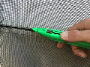 Протяните новую нить экрана от угла до угла вдоль складки каркаса бассейна. Обрежьте лишнюю нить по углам.