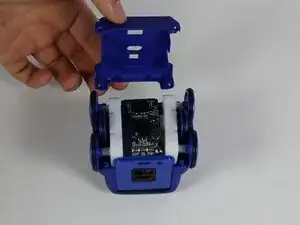 Держась за оси колес, аккуратно отодвиньте верхнюю панель робота от его корпуса.