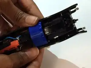 Снова поверните триммер так, чтобы аккумулятор был обращён к вам.
