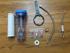 Соединения компрессии 3/8" на 3/8" трубную резьбу (два), заглушка 3/8" и угловое соединение 3/8" с внутренней резьбой (при необходимости). Всего менее