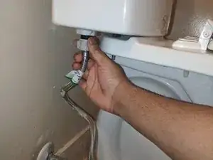 Отсоедините подводку воды от задней части бачка (выглядит как шланг).
