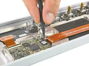 Отключите гибкий кабель с помощью лопаточки и снимите плату DSP.