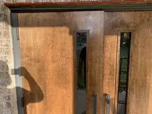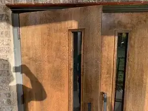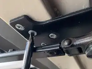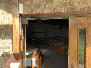 Начните с удаления старого гидравлического доводчика двери. Удалите винты 25,4 мм, вкрученные в дверную раму и дверь.