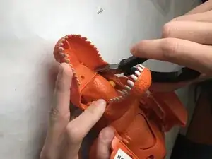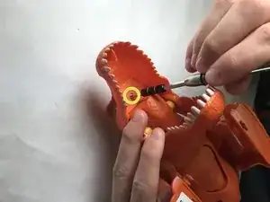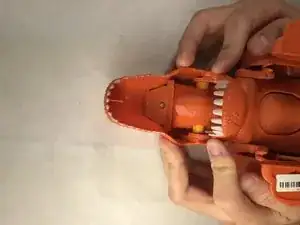 Откройте челюсть T‑Rex, чтобы увидеть винт на крыше его рта.