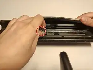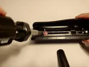 Сдвиньте головку дырокола пальцем в сторону отверстия (в этом случае вправо).