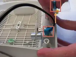 Отделите переднюю часть корпуса от задней части вентилятора и медленно отогните переднюю часть корпуса вниз.