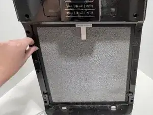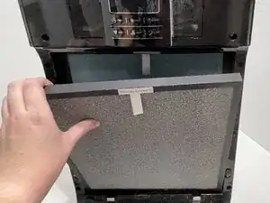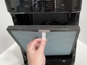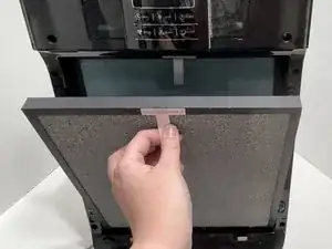 Вставьте заменяющий Hepa-Pre фильтр так, чтобы белая защёлка была обращена к открытой стороне очистителя.