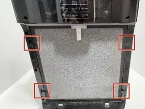Поверните каждую защёлку так, чтобы они перестали фиксировать фильтр.