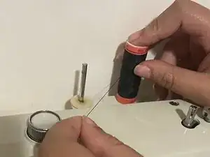 Протяните нитку через отверстие.