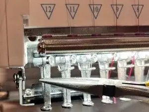 Поверните иглу круговым движением слева направо с помощью плоскогубцев, чтобы убедиться, что она свободно движется и не задевает окружающие компоненты.