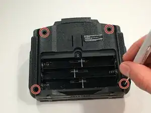Удалите винт от отделения для батарей малой крестовой отвёрткой.