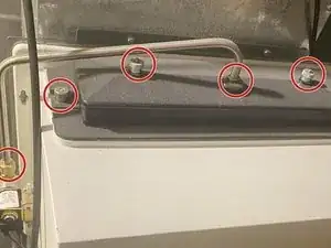 Снимите гайки и зажимы, удерживающие верхнюю крышку сборки шкафа на нижнем корпусе шкафа.