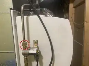 Используйте регулируемый ключ, чтобы ослабить гайку, которая удерживает трубку распределителя воды, и выдвиньте трубку из закрепленного положения.