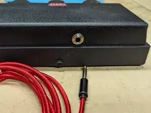 Просверлите отверстие диаметром 3/8" в наружном корпусе педали для стереоразъёма. Выберите место, которое не мешает движению педалей.
