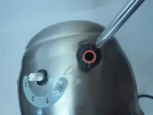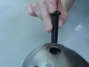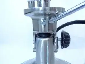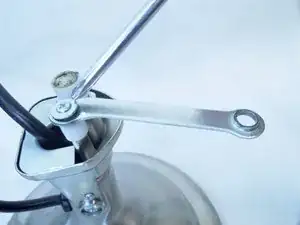 Открутите плоскую гайку 17 мм, закреплённую внизу ручки питания, небольшим разводным ключом.