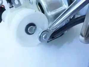 При помощи отвертки Phillips #3 открутите винт длиной 16 мм, крепящий качающийся рычаг к нижнему зубчатому винту колебания.