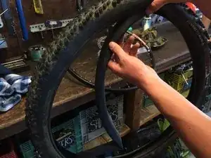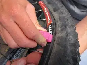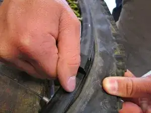 Вставьте дополнительную монтажную лопатку между покрышкой и ободом.