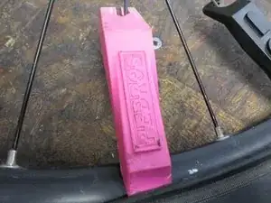 Вставив кончик лопатки между ободом и покрышкой, поверните лопатку на 90° против часовой стрелки и зафиксируйте её за металлические спицы, используя стрелкообразный паз на верхней части лопатки.