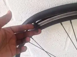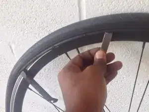 Вставьте плоский край лопатки для шины между внутренней стенкой шины и внешней частью обода.