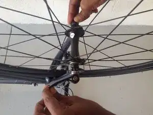 Прикрепите другой конец лопатки к ближайшему спицу на ободе.