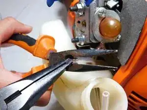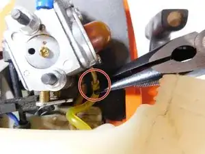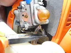 Отсоедините шланги топливопровода от карбюратора с помощью плоскогубцев с тонкими губками.