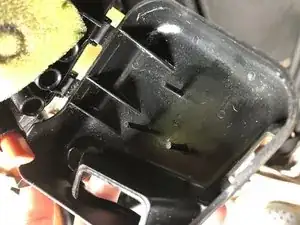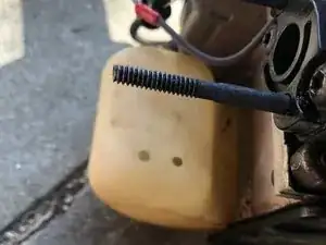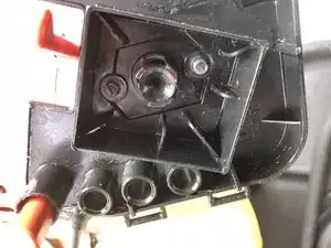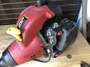 Снимите чёрный корпус воздушного фильтра с триммера. Он всё ещё будет подключён проводом (с этим разберёмся на следующем шаге).