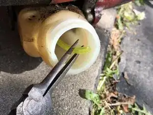 Когда фильтр установлен посередине бака и остальной шланг выходит из бака, обрежьте шланг так, чтобы оставить примерно дюйм или около того запаса для подключения к карбюратору.